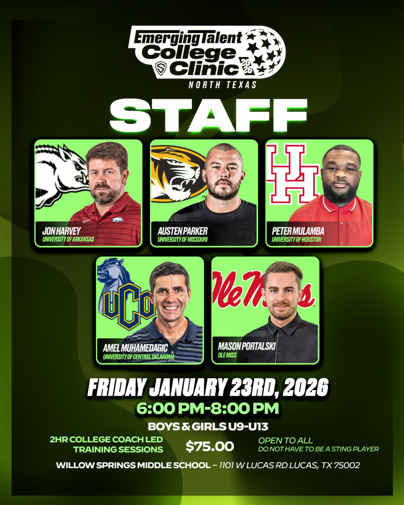 Date: Friday March 13th, 2026 Time: 6:00 PM-8:00 PM Gender – Boys & Girls U9-U13 (Open to all – do not have to be a Sting Player)